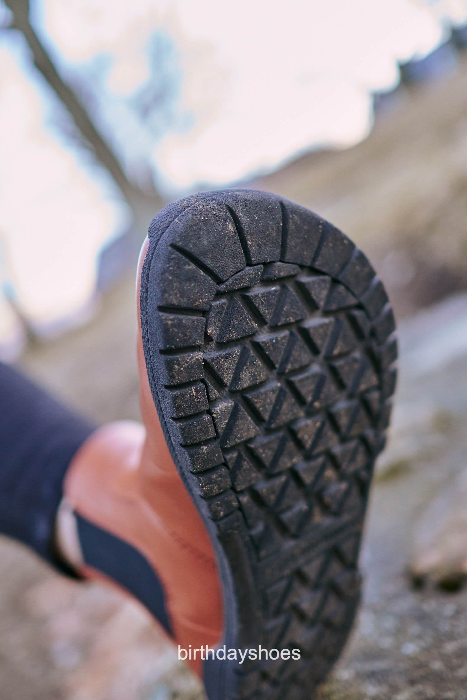 On the inside of the sole, there are alternating triangle lugs that aim both forward and backwards. Despite being on the slightly thicker side in terms of total stack height, they are comfortable to walk in because of this more closed in lug design and its square perimeter lugs. On the flip side, as the lugs are narrowly spaced for walking smoothness, the space between the lugs is slightly on the narrow side, so like the perimeter lugs, gunk can get lodged between them at times. I think that maybe using more open chevron lugs that are V-shaped, unfiled triangles, the boot would be lighter and the sole would have slightly better traction that would prevent stuff from getting trapped within the lugs.