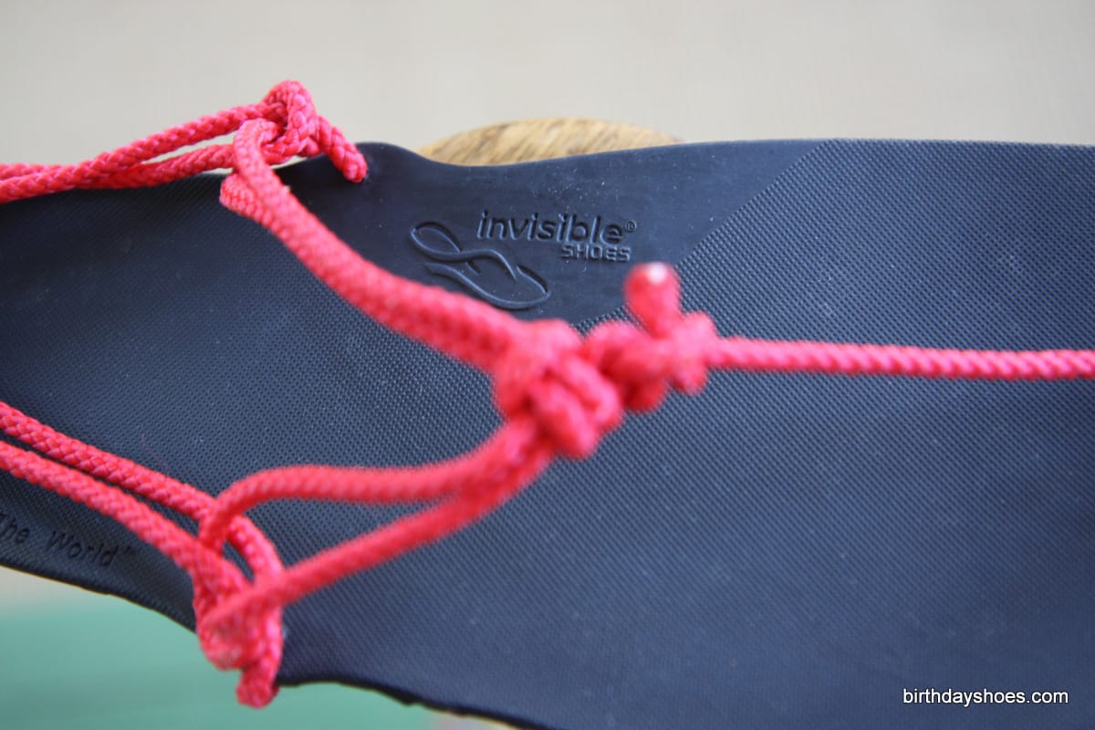 As for the dreaded "knot" that rests under your toes, generally, it's not an issue. Because there's a big gap between your toes where this knot is underfoot, things tend to work out where the knot goes unnoticed by your foot. It just ends up pushing up into the gap between your toes. As for wear on the knot, it seems that the knot can hold a good bit of abuse. And in the event it fails, you just pull some more thread through, re-tie, and re-set (using a little flame) and you're golden.
