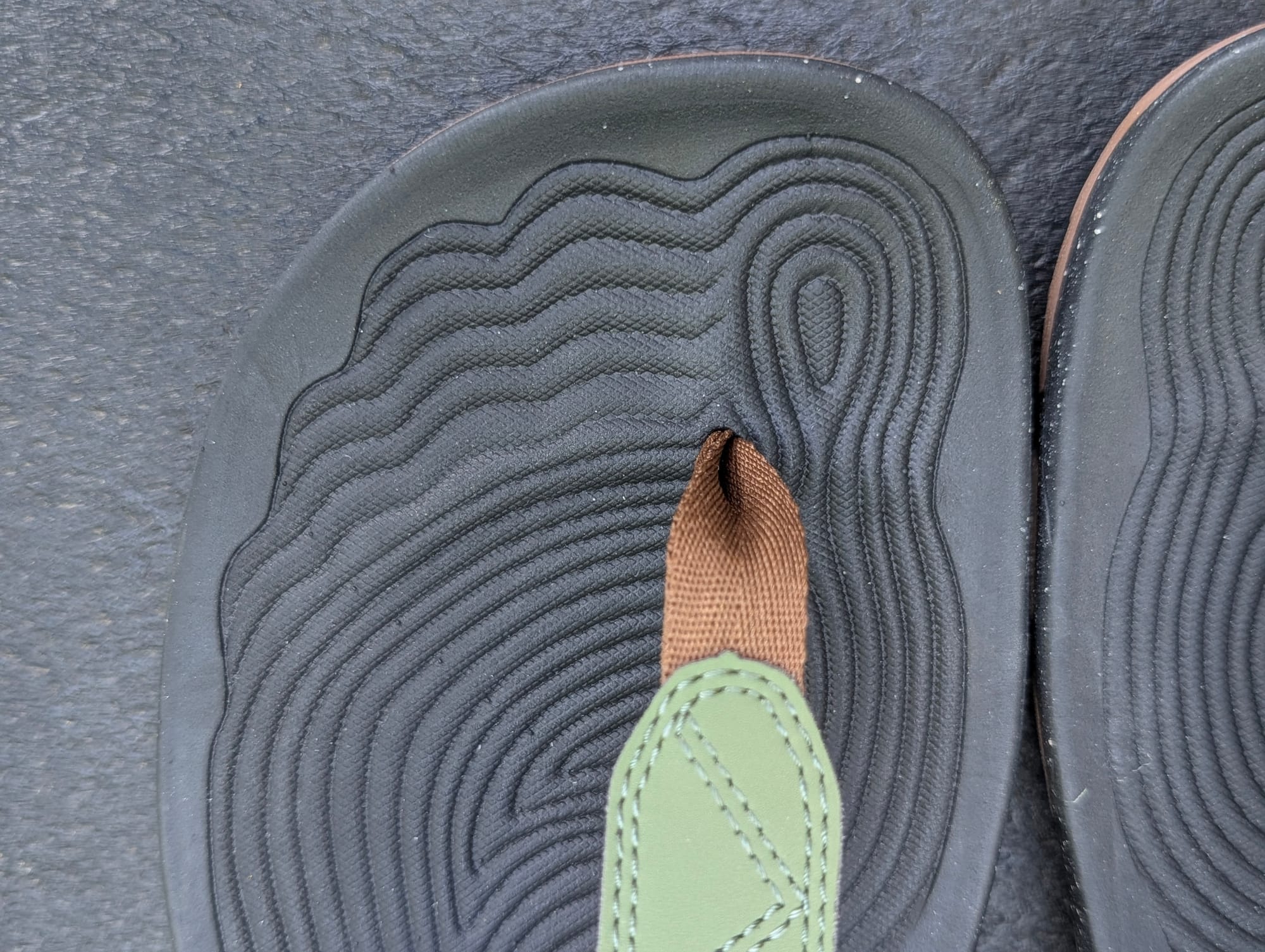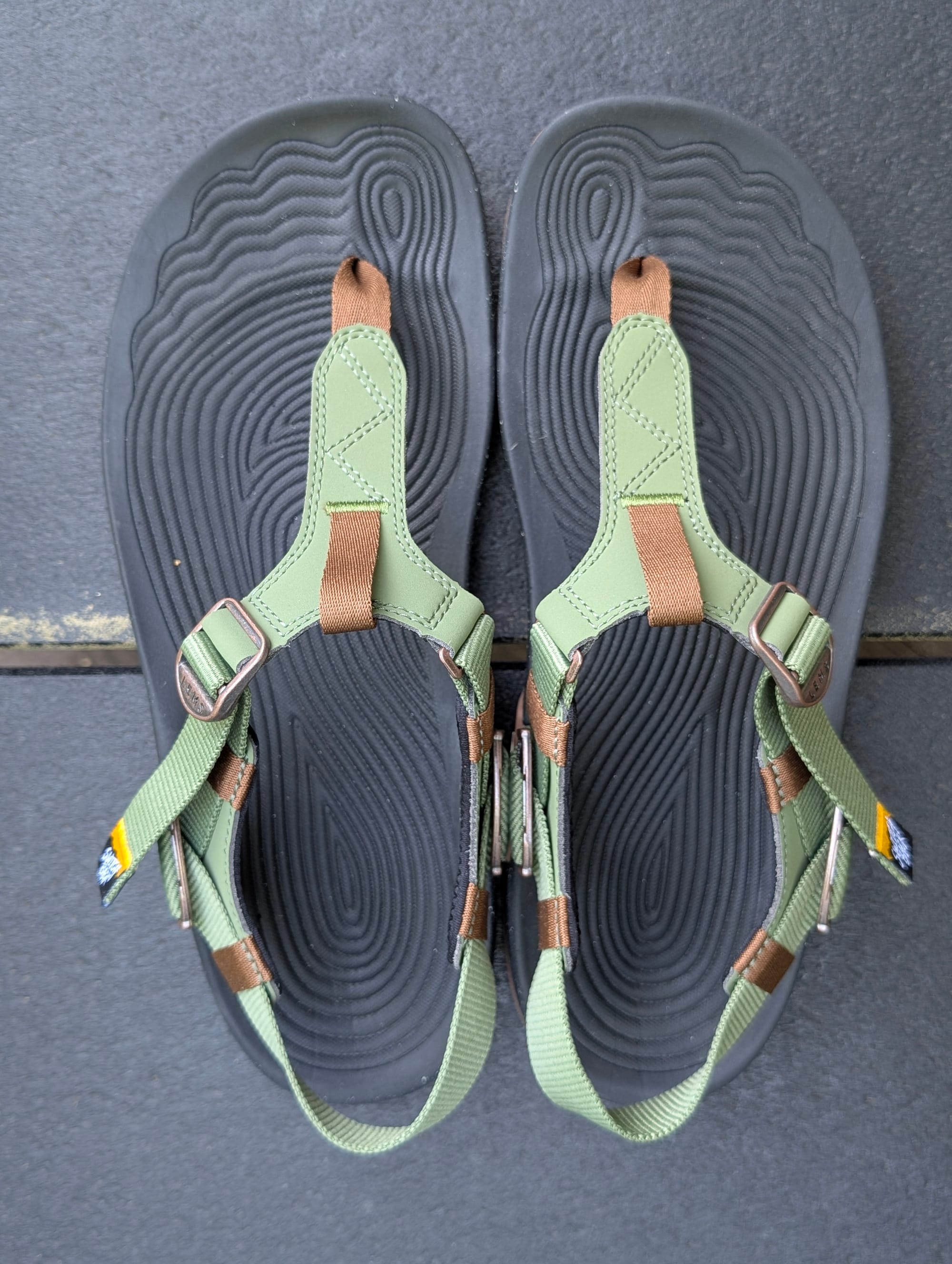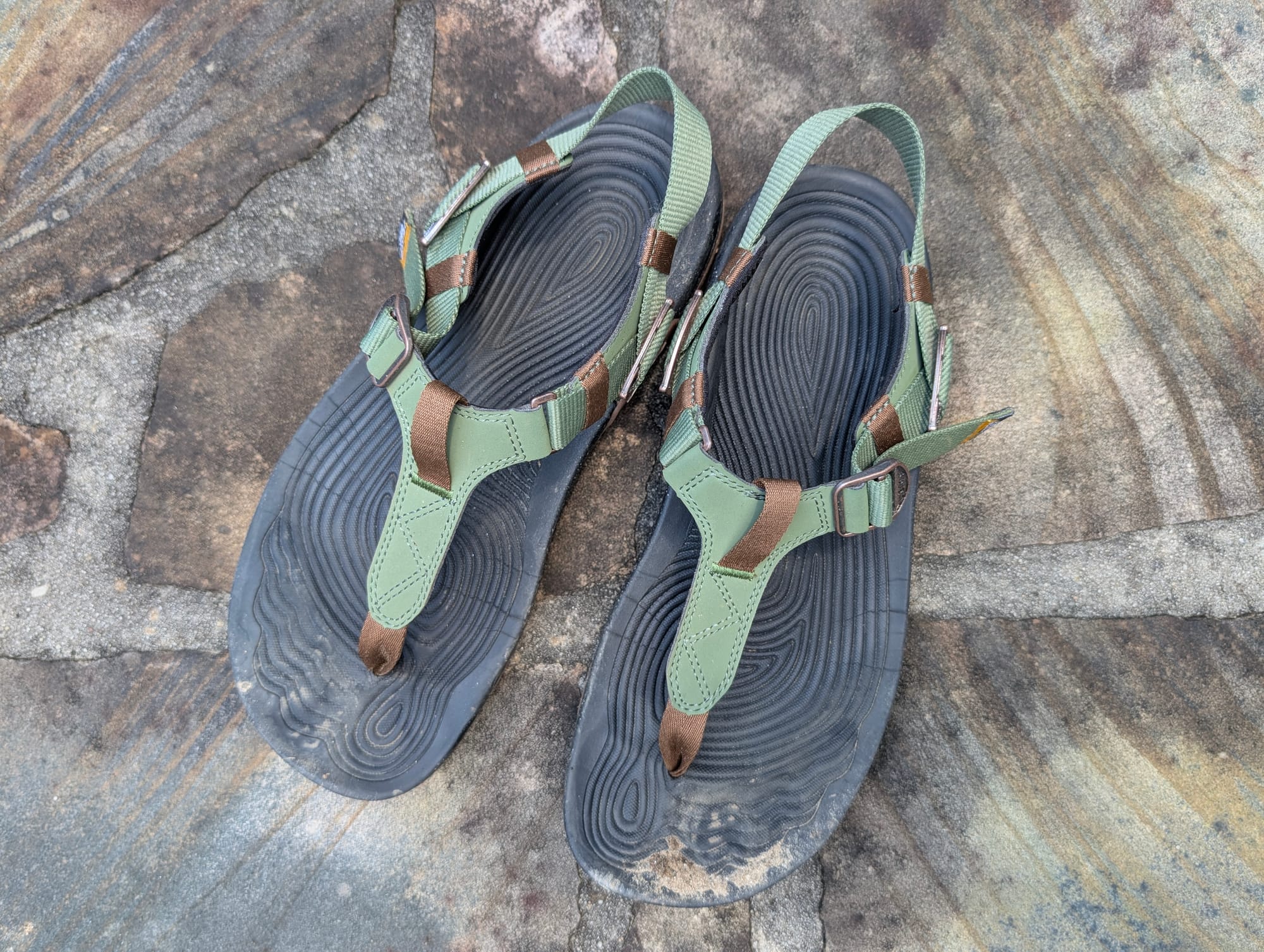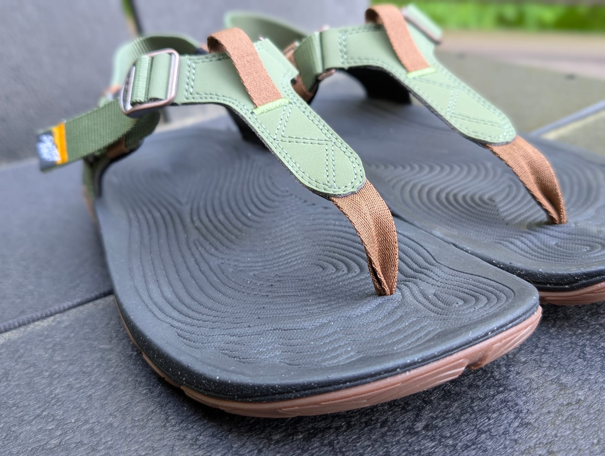That said, that 14-17 mm stack height combined with the toe-post design whereby your foot has more lateral play at the front did lead to a couple minor slips. On a couple occasions during one hike, I misstepped on angled terrain and my foot wanted to shift off the footbed at the front of the sandal (the toe post can only do so much to stop this kind of movement). I was fine. Still, always a good reminder of the open-toe vulnerability of sandals on the trail, especially to your toes and the outside front of your feet.