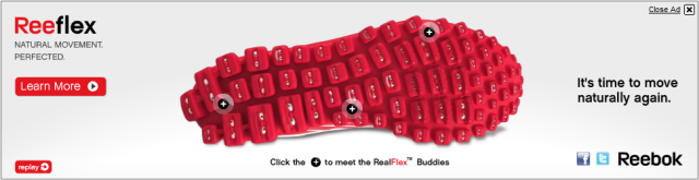 Don't take my word for it, just hop over to YouTube today (April 14) and you'll see that Reebok has a huge masthead promoting the RealFlex in all it's 76 "sensor" glory. Actually, the little sensors — anthropomorphic foam rubber pods that cheer you on as you run — are funny little foam monsters. More on those little guys later.