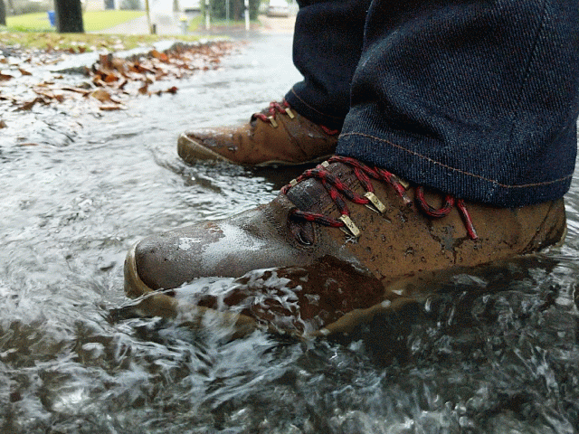 Thanks to a rainy Fall here in Atlanta, I've worn them through some fairly wet conditions. Today, as Atlanta sustained an all-day deluge of steady to heavy rainfall, I was able to just stand in some water by the curb. While the Tracker's leather upper appeared to "soak" rather than bead up water, no moisture seemed to get inside the boots. I imagine that long-term you'd probably want to oil the leather or use some other method to boost the water-resistance of the leather. That said, I suspect the real water resistance comes from the liner inside the boots.