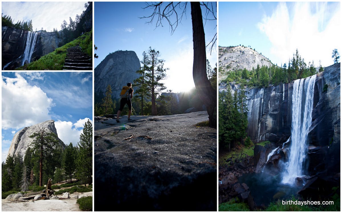 I put the tread to the ultimate grip test. I know these weren’t meant to be the ultimate trekking FiveFingers, but they did an amazing job and I wouldn’t do this hike in anything other than VFFs. Yosemite’s Half Dome was an intense 17-mile day hike taking around 10.5 hours to climb up to 8,800 feet in elevation. In the beginning there are an endless amount of rocky stairs that run alongside some massive waterfalls, then it turns into a regular dirt trail through the forest.