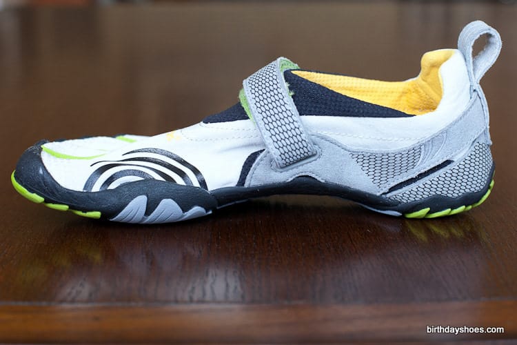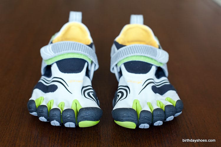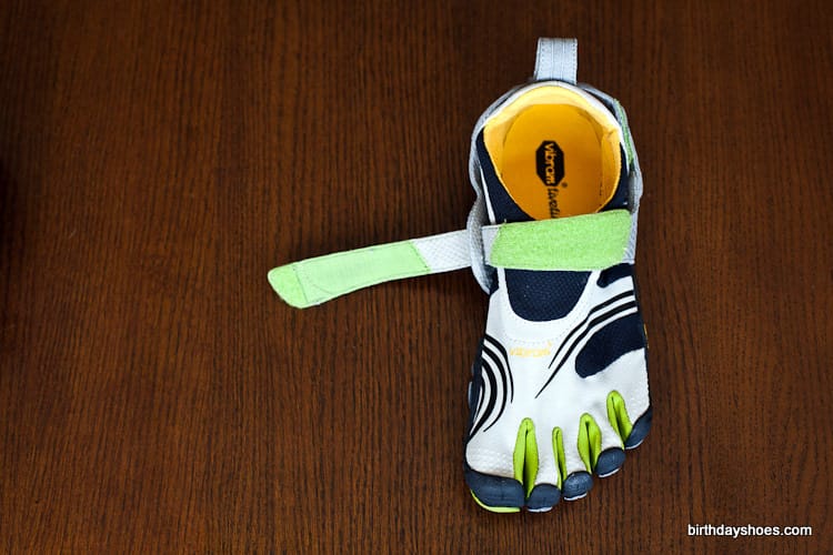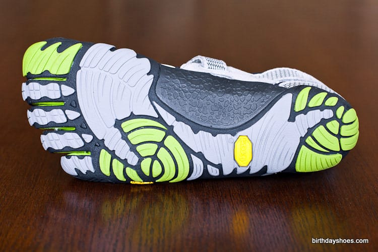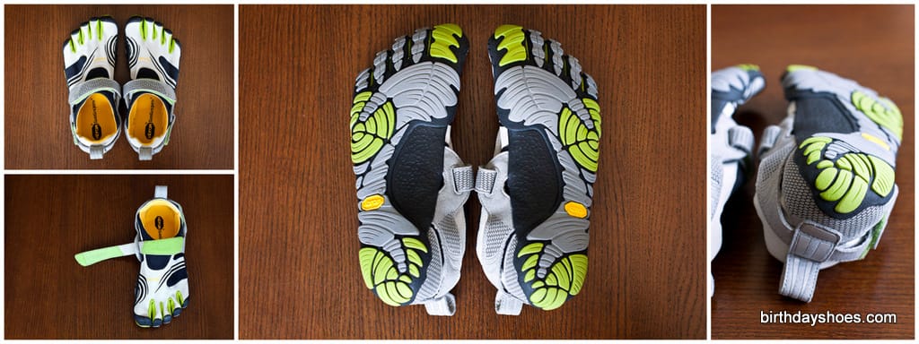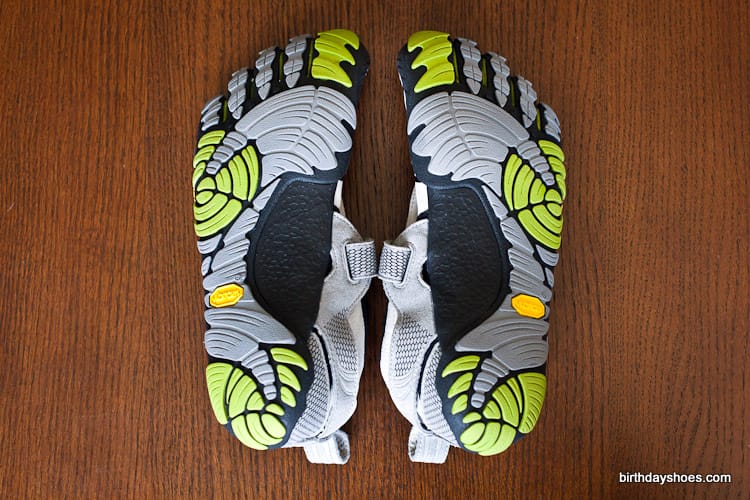 The design of the KMD Sports doesn’t come across as sleek as some of the lace-up VFFs, but for a Velcro system they’re not too bad. My pair are light gray and black with some lime green highlighting in between the toes. There’s a mini honeycomb pattern on the straps with subtle areas of reflective tape (in the shape of three lines). I’d say they come across more techie than anything.