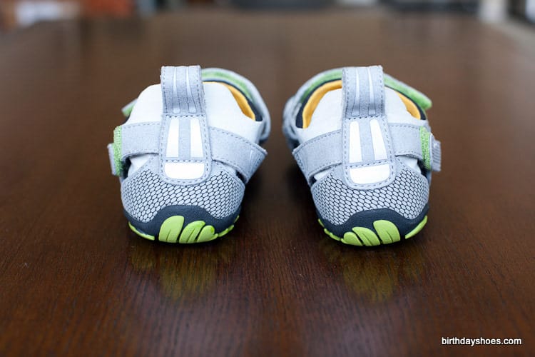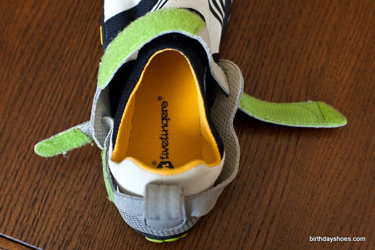 Closure — There are two Velcro straps. One across the top and one around the back of the heel.