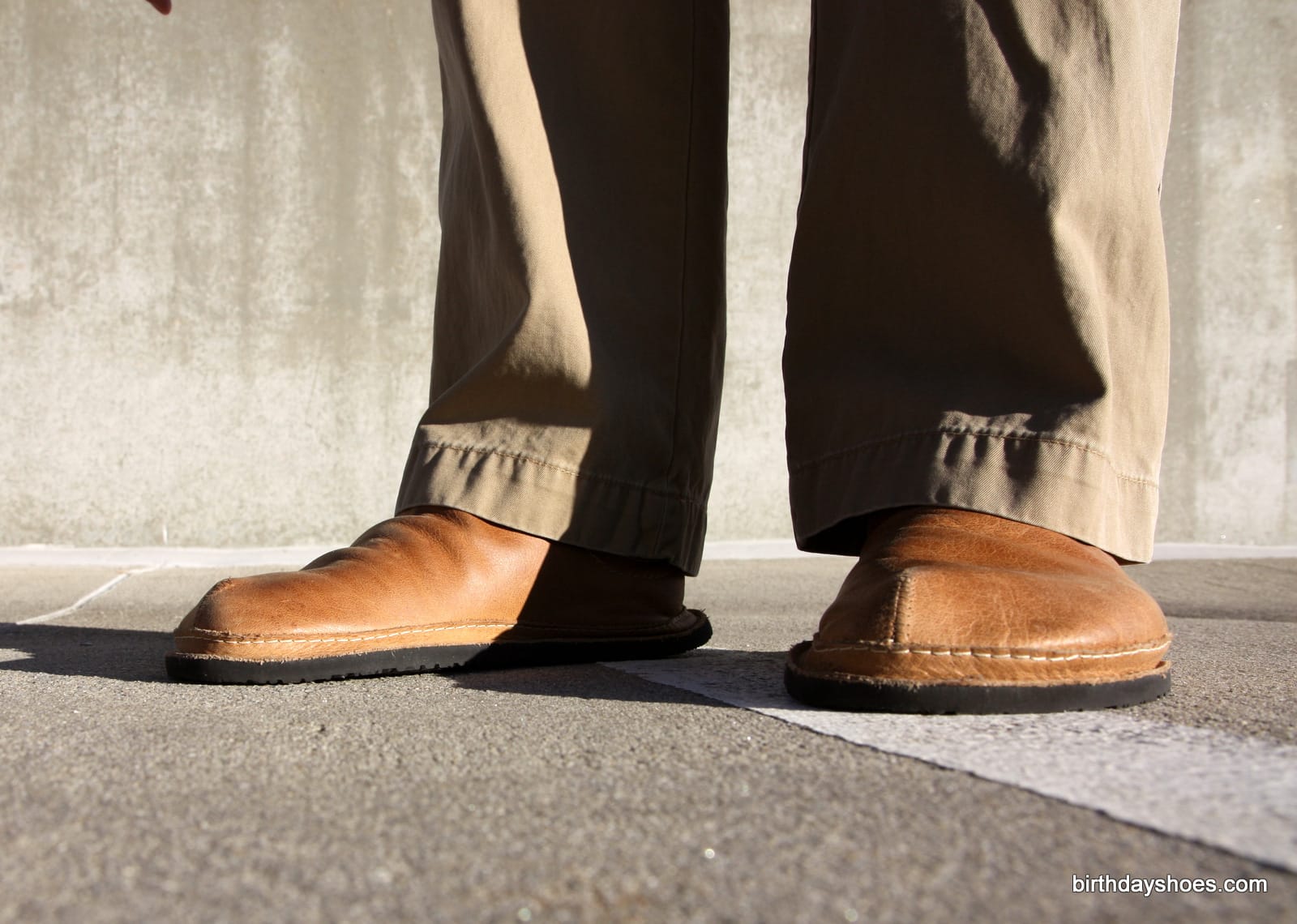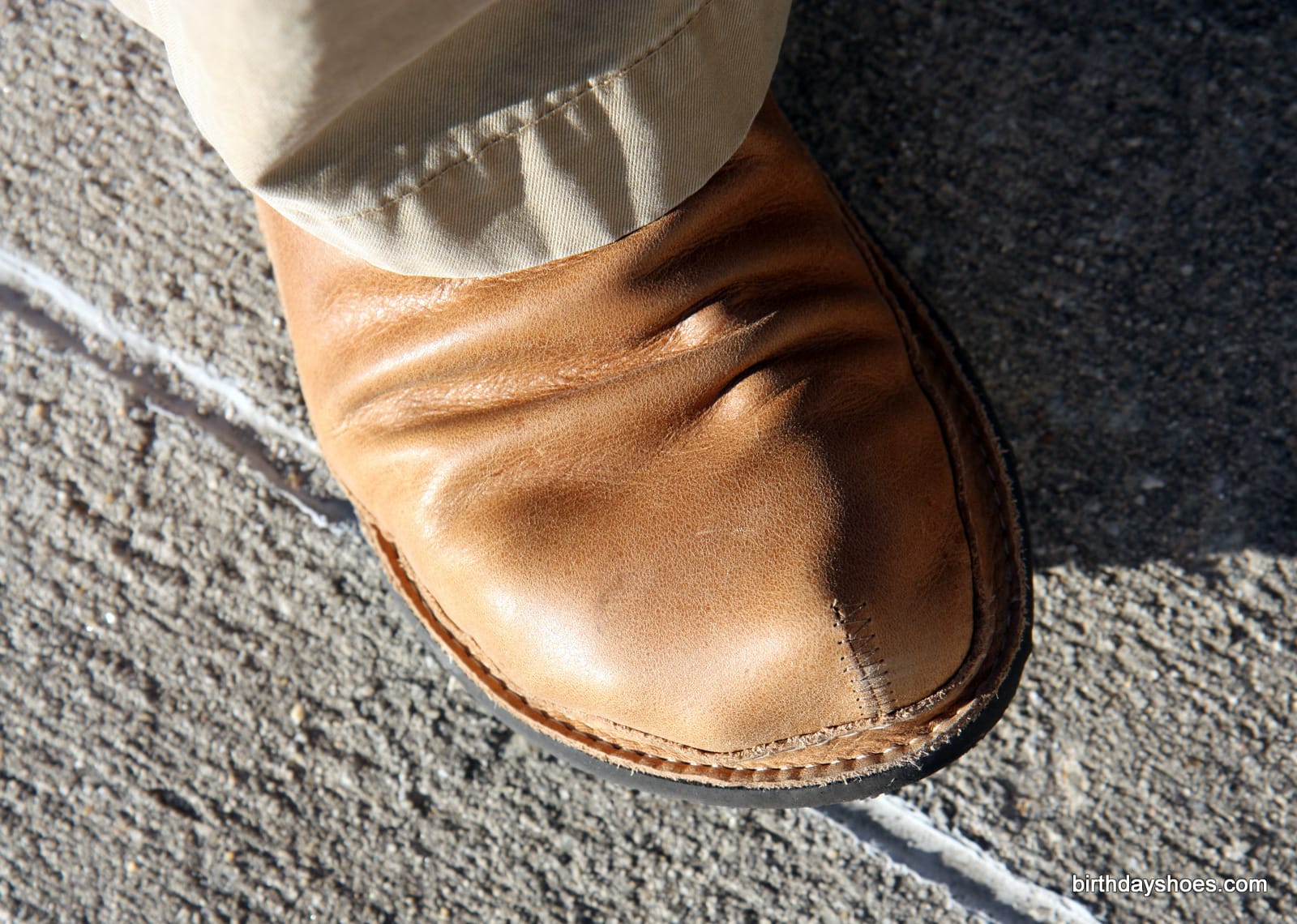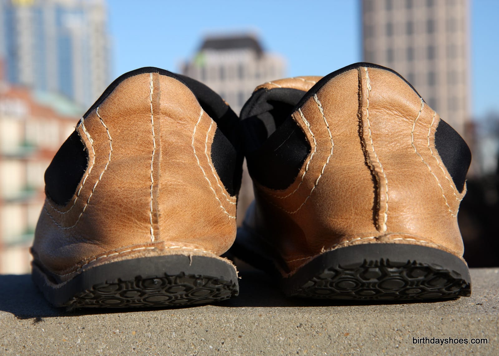 Soft Star Shoes sent me a pair of the Rogues (for free) in "Aged Oak," which has a weathered leather deep tan finish (Note: This color has since been replaced as of 2025 by "aged whiskey" and they also have two other colors).