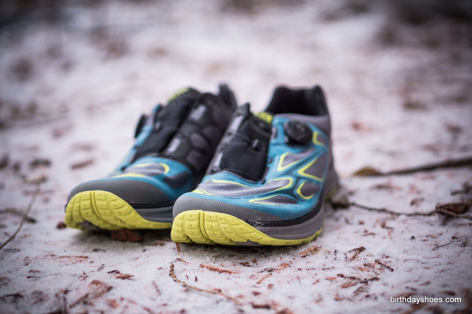 The Runduro uses ToPo’s BOA lace system, which is a cable that runs through a spool on the outside of the shore. The BOA system is very secure, quick, and easy to use and I greatly prefer them over traditional laces.
