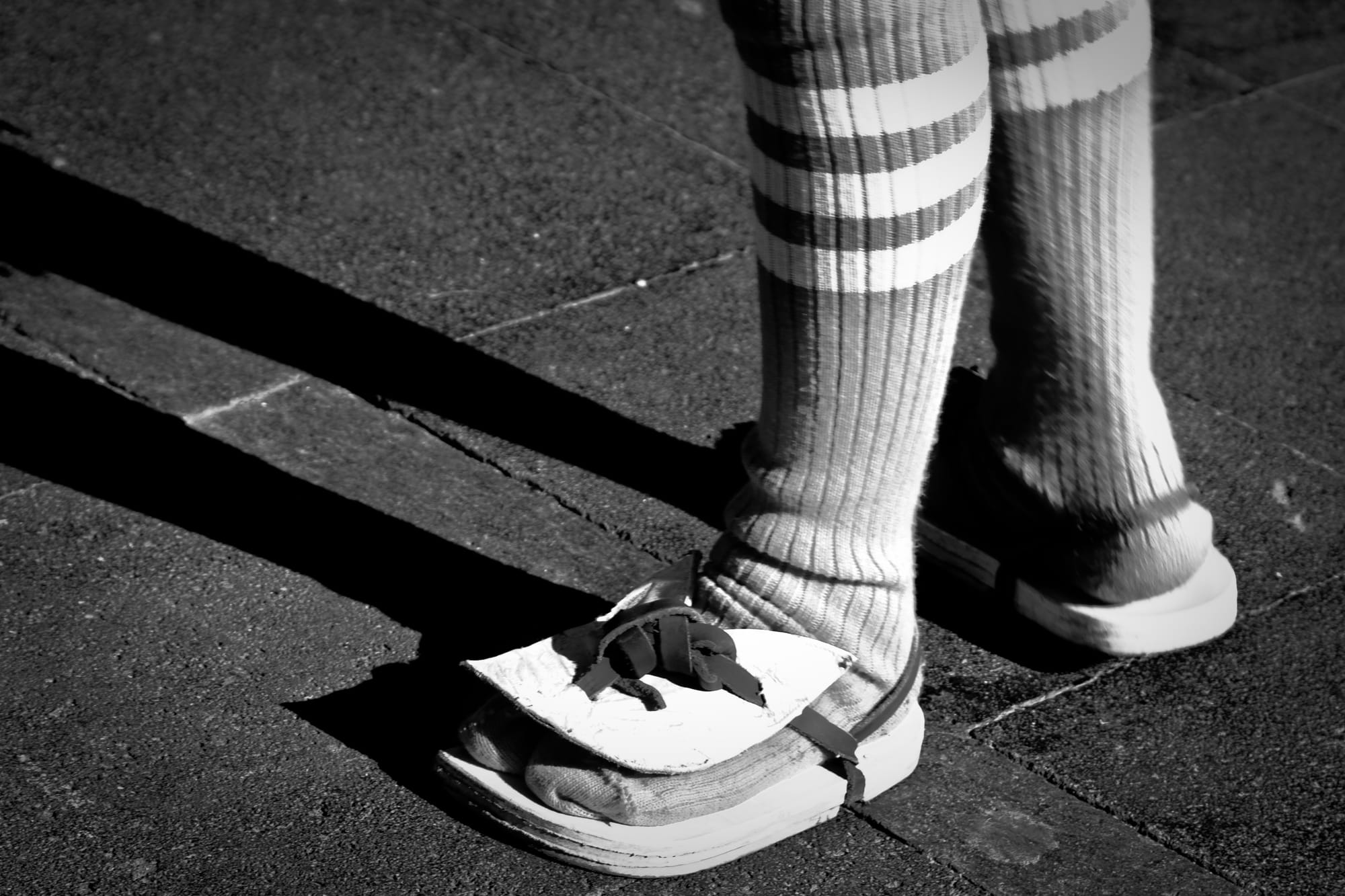 So what's the catch with huaraches? This: When your foot dorisflexes (toes point skyward), the extra inch and a half sole past the strap doesn't go anywhere. It just hangs back. And depending on the rigidity of the rubber used in the huaraches, can sometimes snag on the ground, rolling under my foot.